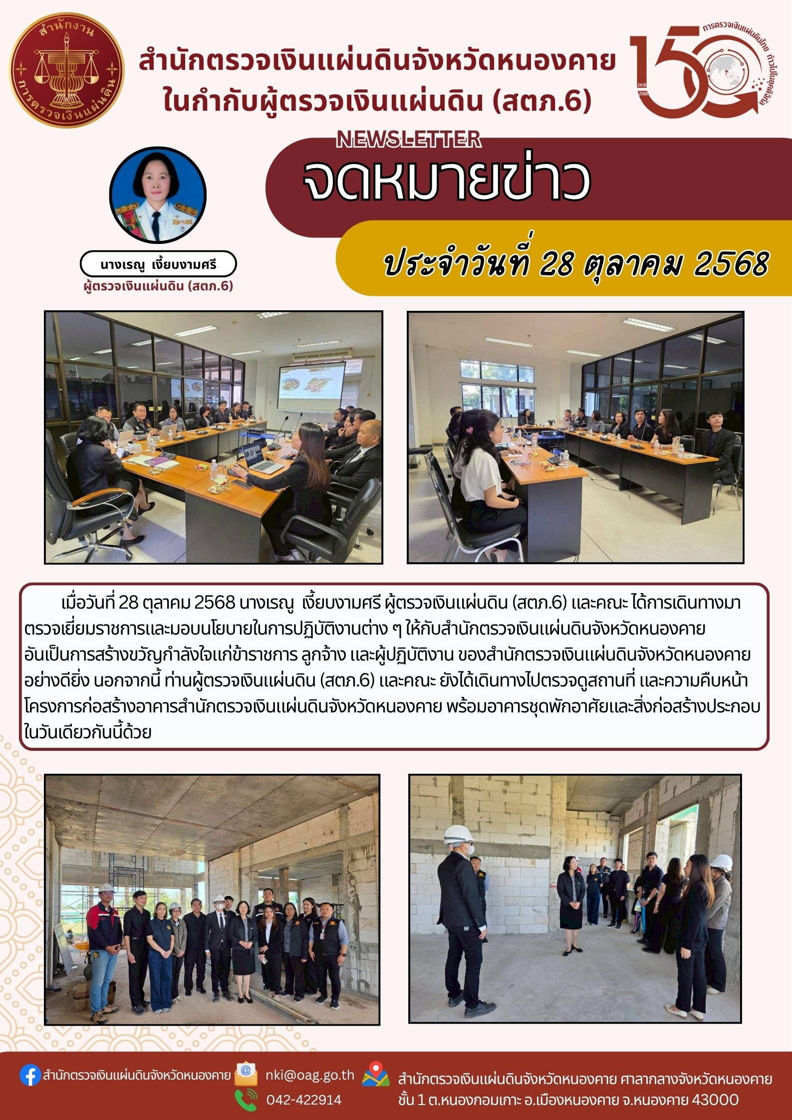 2568-10-28 ผู้ตรวจเงินแผ่นดิน (สตภ.6) และคณะ ได้การเดินทางมาตรวจเยี่ยมราชการและมอบนโยบายในการปฏิบัติงานต่าง ๆ ให้กับสำนักตรวจเงินแผ่นดินจังหวัดหนองคายข่าวประชาสัมพันธ์ตุลาคม 28, 2025ตุลาคม 29, 2025 Post Views: 133