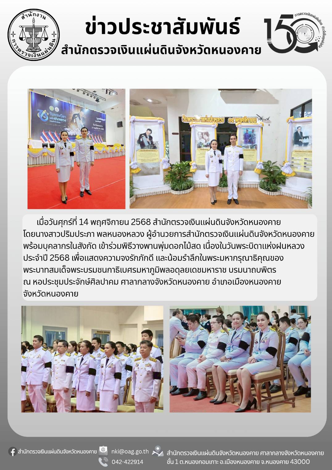 2568-11-14 สตจ.หนองคาย เข้าร่วมพิธีวางพานพุ่มดอกไม้สด เนื่องในวันพระบิดาแห่งฝนหลวง ประจำปี 2568งานราชพิธี/รัฐพิธี, ภาพกิจกรรมพฤศจิกายน 14, 2025พฤศจิกายน 14, 2025 Post Views: 253
